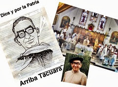Y entre peronistas descamisados y anti-peronistas (gorilas), entre la versión histórica de unos y otros de la historia del régimen y de su caída, surcaría hasta hoy las aguas de la memoria colectiva la corriente del llamado nacionalismo/argentino de la que Tacuara puede ser visto como una criatura (la más díscolas de todas) Y un dato innegable y todo menos trivial no obstante y cargado de significado -que confieso que desconocía- lo es el anti-peronismo inicial (furibundo por lo que cuentan) del fundador de Tacuara, el padre Julio Meinvielle, permanentemente en la boca de mi amigo hispano/argentino en los tiempos que le traté y al que reservaba una veneración sin límites a él como al padre Leonardo Castellani (a quien tanta devoción literaria parece guardar Juan Manuel de Prada) Obviando cuidadosamente siempre delante mía por cierto esa faceta innegable de su icono (anti-peronista), por las razones que fueran, familiares sin duda en parte, de lo que de él sabía. Sintomático en extremo desde luego, porque se puede afirmar sin caer en juicio temerario que la figura del célebre (y controvertido) presbítero -ejemplar arquetípico del cura/político si los haya habido- condicionó innegablemente la visión que mi amigo tenía de la historia argentina y de la que él mismo me comunicó a mí en consecuencia. Mi amigo hispano/argentino respiraba igualmente una admiración sin límites hacia Alberto Ezcurra (padre Ezcurra más tarde) jefe mítico de Tacuara, joseantoniano (puro) y a la vez y discípulo del padre Meinvielle, su protector eclesiástico tras ordenarse sacerdote (...)