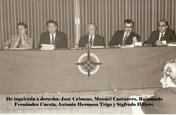 Reunión de una de las promotoras aquellas (¡ay dolor!) de "unidad de los falangistas" de la transición (o de antes ya), que -¿por propia definición?- no llevaron nunca a ninguna parte. A la izquierda de la foto, José Cabanas, impulsor y animador en la actualidad de la pagina web de "Hispaniainfo" ("joseantoniana") donde se acaba de lanzar un ataque en toda regla -y no menos hipócrita- a Marine Le Pen por cuenta de su postura (razonable) en el tema del aborto. Se nota que les hace daño el impacto innegable que su entrevista en la Sexta ha tenido, por su presencia y su intervención como por su mensaje sobre la imnigración que a todas luces ha calado hondo en la opinion pública. Un ataque -en breves líneas (como si la francesa no se mereciera más que eso), y sin firma como casi siempre (...)- a base de baratijas dialécticas y de los tópicos de costumbre, sobre el totalitarismo, el nacionalismo, "el hombre hijo de dios y portador de valores eternos, capaz de salvarse y esto y lo otro" (etcétera, etcétera) , y una actitud por lo menos poco franca y unos argumentos torticeros (un palabra inédita en mi vocabulario de joven, que ellos gustan de decir mucho) A la derecha de la foto, Sigfredo Hillers, antiguo jefe del FES -emigrante en la República Federal (en Bonn) años cincuenta- de padre alemán del que no nos habló nunca llegado a España durante los años de la república. ¿Huyendo del nazismo? Eso nos aclararía muchos enigmas que su hijo llevó siempre pegados a la piel como quien diceY entre ellas, esa ley de la Memoria Historica que viene a querer proclamar e imponer -a falta de una victoria por las armas entonces- una Verdad Historica Oficial (sic) que vendría a querer servir en la mente de sus mentores (por activa o por pasiva) -a saber la iglesia española y el PSOE (y en última instancia todo el sistema PP/PSOE o PSOE/PP)- de una especie de rendición final oficial del bando ganador entonces, setenta y cinco años después (como se veran cumplidos el proximo Primero de Abril)