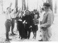 Casamiento ario -por lo civil- de Joseph Goebbels y Magda Quandt, divorciada y de confesión protestante, el 19 de diciembre de 1932. Al lado de Goebbels, el hijo del primera matrimonio de Magda, Harald. Detrás, de testigo de la ceremonia, Adolfo Hitler que recibiría a seguir una advertencia (admonitio) canónica. Goebbels en cambio -catolico bautizado- fue excomulgado "latae sentiae" por su casamiento con una protestante, y como tal excluído de la iglesia (...)Las víctimas y los servicios competentes –no aprende la lectura noticia- acababan optando por la resignación y el silencio, por miedo a ser tildados de racistas. A buen entendedor pocas palabras sobran. Otra noticia que habrá conmocionado no poco la opinión pública española que viene a sembrar no pocas dosis de confusión e incertidumbre frente al mensaje político (y moralmente) correcto que nos transmiten sin pausa ni descanso los medios en ese tema, lo es el caso de la supuesta violación colectiva de Málaga, que pareció transportar por un momento a toda la sociedad española a otros tiempos, y otras latitudes (de otros valores de civilización, otras confesiones, otras culturas) ¿Agua de borrajas al final? Todo parece apuntarlo tras la sentencia judicial sobre el caso.