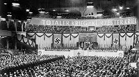 Intervención del doctor Goebbels en el Palacio de Deportes de Berlín, el 18 de febrero de 1943, a seguir a la rendicion del VI Ejército en Stalingrado. Discurso de la Guerra Total. A partir de ese momento, el ministro de Propaganda del Reich -excommulgado (...) por la Iglesia- empieza a asumir el liderazgo político y moral de una Alemania en guerra y fatalmente abocada a la derrota, mientras el Fuhrer -lastrado por la enfermedad y objeto, por aquellas mismas instancias eclesiásticas, de amonestacion canónica apenas (...)- va sumiéndose en un papel de figura decorativa, lo que se se verá puesto clara y flagrantemente al descubierto en el último año de guerra. Por la actuacion crucial en el plano de la guerra de propaganda del doctor Goebbels, el regimen nazi acabaría alcanzando una legitimación popular (volkslegitimiteit) indiscutible, sin precedentes ni parangones en la historia de los regimenes dictatoriales (o auoritarios) Y entre los ingredientes esenciales de su mensaje, figuraba un anticlericalismo radical de raíz innegablemente moral basado en acusaciones de ese orden y en particular la de aberracion mental en el plano de los comportamientos sexuales -peste sexual (sic)- por cuenta de la iglesia jerárquica y de sus ministros.Me siento mucho más libre en lo sucesivo a la hora de expresarme como a la hora de pensar por mí mismo, lo dije y lo mantengo. Desde que le di la espalda a "la España en marcha" me refiero. Les apoyé en la actitud resuelta que tomaron -o parecieron tomar- el año pasado en Cataluña, con el paso del tiempo no obstante, de los días y de lo meses se fue haciéndose cada vez mas claro para mí las fuertes desavenencias que nos separaban que traté de sortear en alguna ocasión, y aquí son todos testigos de ello.